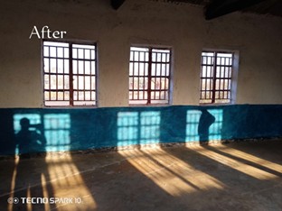 In August 2024, the construction work was completed and the classroom block now has new walls and a new roof. Window blocks and doors have been put in place and overall the building is now a much more conducive learning environment for over 200 students.