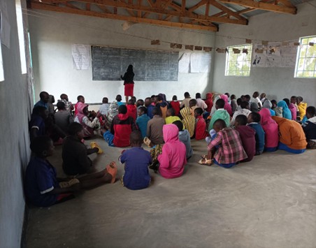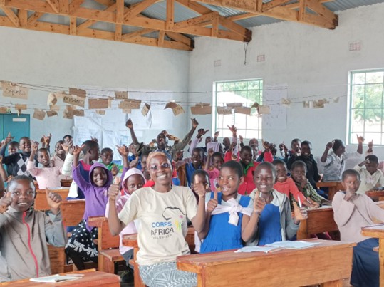 Bernadette Mponda, Corps Africa volunteer, described that one of the school buildings is old and damaged, with visible cracks, no windows, and broken floors. Students sat on the floor and often during the rainy season the roof leaked disrupting learning activities. The FOMA grant helped to improve the learning environment by repairing the roof, floor and windows.