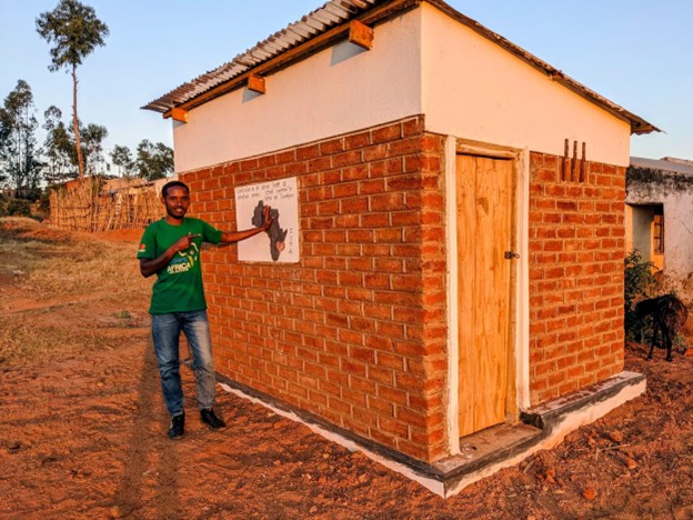 Kaitano Maison, CorpsAfrica Malawi volunteer explained: The single toilet used by the girls at the school fell down due to heavy storm in 2022 forcing the girls to go home for toilet use. The school also had no changing room for girls during menstruation. These affected the girls’ education since they missed class lessons. To solve the problem, the community contributed sand, bricks, quarry, water and labour and with the help of the FOMA grant, the new toilets were constructed. At least 100 girls have started using the two toilets and changing room hence thie grant has greatly improved the sanitation, menstrual hygiene and education of girls at Ligowe CDSS.